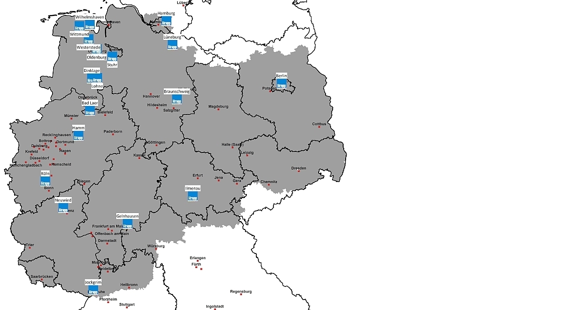 Die 18 bundesweiten Standorte der Krapp-Gruppe. Grafik: Krapp