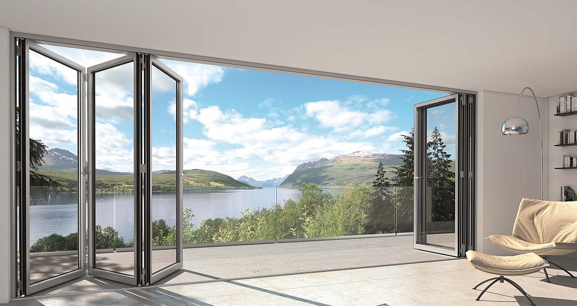 Ebenfalls im Ventana-Sortiment: Die Schüco Aluminium Faltanlagen ASS 70 FD und 80 SD.HI. Foto: Schüco International KG