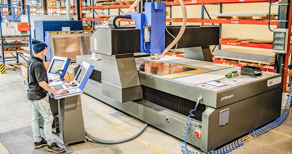Die speziell für die dpi-Bedürfnisse konzipierte Anlage mit einer wartungsfreien linearen Antriebstechnologie und modularem Aufbau sorgt für eine hochdynamische, präzise Bearbeitung. Perfektes Ausfräsen von filigranen und massiven Werkstücken bei maximalem Vorschub mit optimaler Oberflächenqualität, nahezu fertig vorbereitet für den nächsten Arbeitsschritt der Pulverbeschichtung ist ein wesentlicher Vorteil. Die Niederhaltung des Werkstückes erfolgt berührungsfrei direkt an der Frässtelle und das „Tornadosystem“ ermöglicht ein nahezu spanfreies Absaugen. Der Werkzeugwechsel aus bis zu 60 Werkzeugen erfolgt innerhalb des Fräsauftrags automatisiert und sekundenschnell.