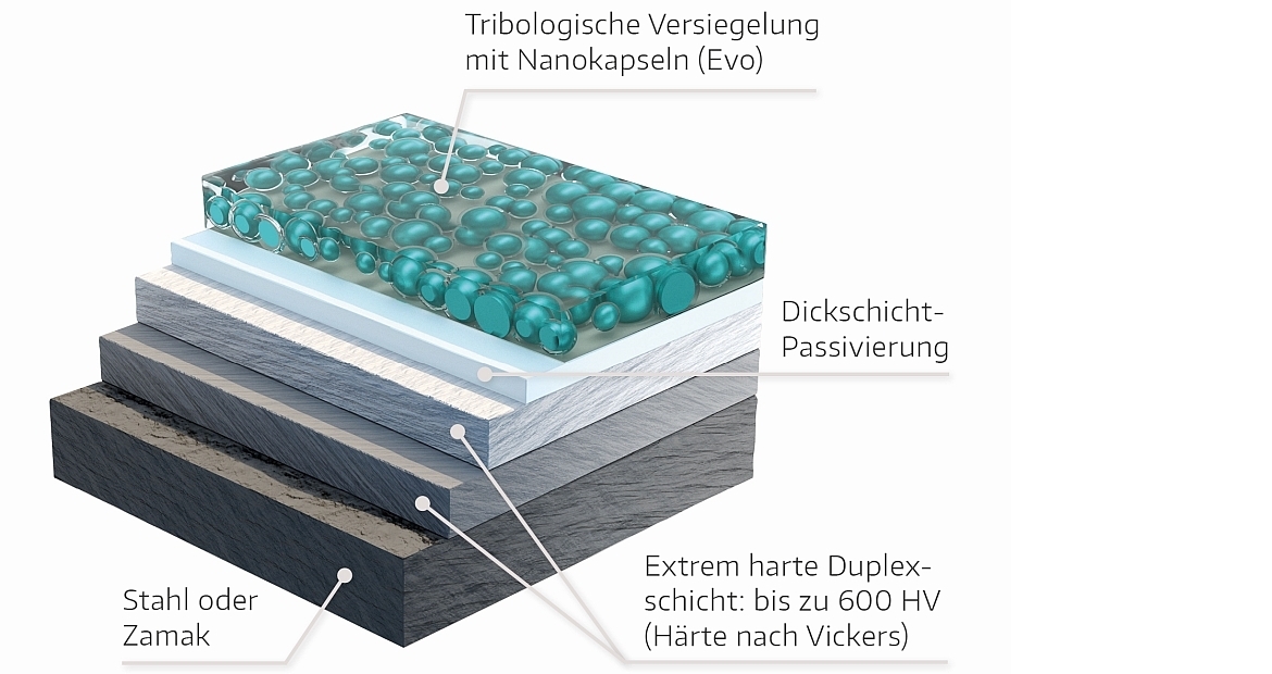 Die tribologische Versiegelung von Tricoat-Evo hat selbstheilende Wirkung. Grafik: Maco