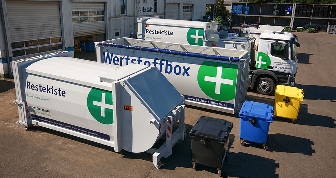 Die Boxen für die getrennte Wertstoffsammlung bei Becker + Bruegesch in Bremen. Foto: Becker + Brügesch