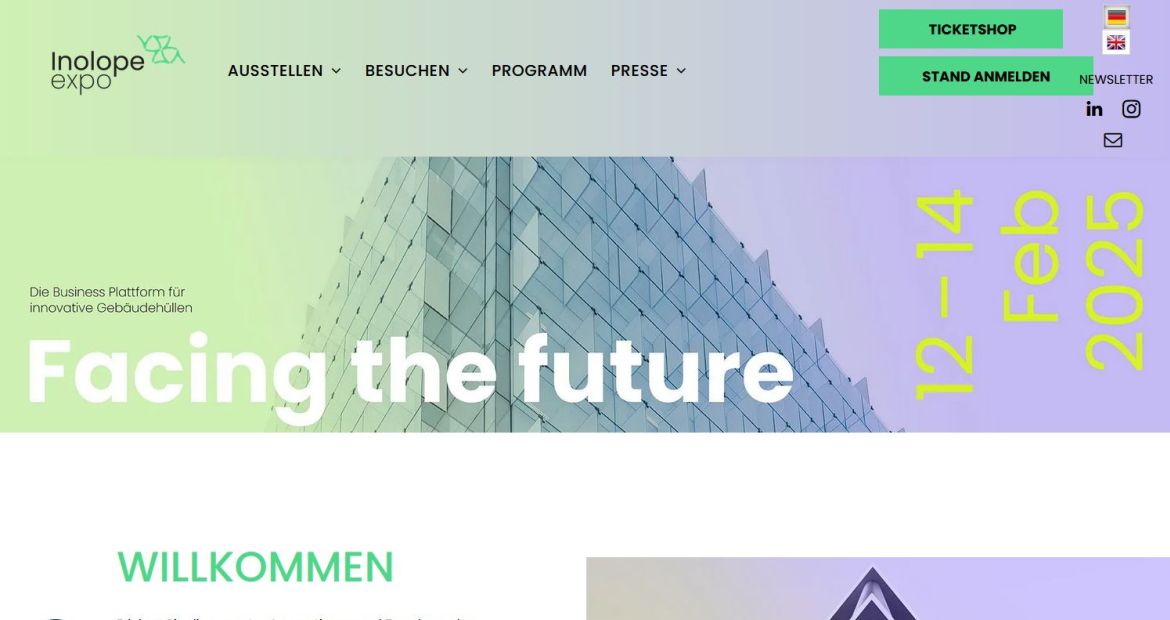 Im Februar 2024 geht mit der Fachmesse Inolope Expo ein neues Messeformat an den Start. Es richtet sich an Fachbesucher, die sich mit der Gebäudehülle als Schlüsseltechnologie für Klimaneutralität im Bausektor beschäftigen: Planer, Architekten, Projektentwickler, Bau- und Handwerksunternehmer, Immobiliengesellschaften, Vertreter von Städten und Kommunen sowie Organisationen aus dem Bereich Forschung und Entwicklung. Begleitet wird die Inolope Expo von einem umfassenden Rahmenprogramm. Fachbesuchertickets sind im Ticketshop erhältlich.