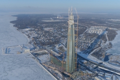 Mit einer Höhe von 462 Metern ist das Lakhta Center in St. Petersburg jetzt das höchste Gebäude Europas. Ende Januar wurde die 13 Meter hohe Spitze aus Edelstahl des deutschen Fassadenbauers Gartner auf den Turm gesetzt. Mit seiner gebogenen Glasfassade dreht er sich wie eine Nadel gleichmäßig in die Höhe. Gläserne Atrien an den fünf Außenkanten lassen sich natürlich belüften und sollen zusammen mit weiteren energiesparenden Techniken das Gebäude zu einem Green Building machen. Mit Aluminium, Stahl und kalt gebogenen Gläsern verkleidete die Josef Gartner GmbH aus dem bayerischen Gundelfingen das Lakhta Center mit einer rund 100.000 m2 großen Fassade, was etwa der Größe von 14 Fußballfeldern entspricht.