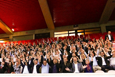 Das (fast und natürlich nur in Teilen) vollbesetzte Stadion des FC Heidenheim. Rund 250 Gäste konnte 3E auf seiner Jubiläumsfeier begrüßen. Foto: bb.