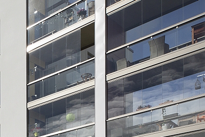 Neben den rahmenlosen Balkonverglasungen sind die Geländersysteme die wichtigsten Produkte des finnischen Anbieters Lumon. Sie kommen vor allem in größeren Wohnungsbauprojekten zum Einsatz. In den meisten Fällen werden sie direkt in Verbindung mit einer Balkonverglasung geplant und gemeinsam montiert. Es besteht aber auch die Möglichkeit, das Objekt erst mit einem Geländer auszustatten und zu einem späteren Zeitpunkt die passgenaue Verglasung zu ergänzen - nach individuellen Bedürfnissen der Bewohner.